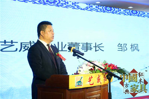 藝威紅木企業(yè)負責(zé)人鄒楓講話