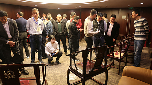 ▲圈椅審美大會,現(xiàn)場參會者在選評家具據(jù)悉,2019年,中華木工委、中國紅木古典家具理事會就曾先后成功舉辦了圈椅審美大會和官帽椅審美大會,邀請了許多業(yè)內(nèi)知名專家授課,反響異常熱烈。對生產(chǎn)企業(yè)來講,通過專家點撥,能夠更全面、更準確地找出自己作品的優(yōu)缺點,改進不足,把家具做得更好;對紅木愛好者來講,提高審美鑒賞水平,有助于在市場上選購到更加稱心如意的好家具。