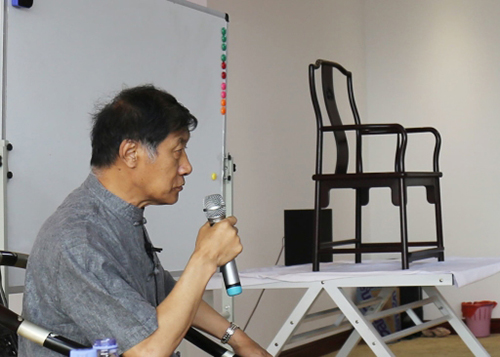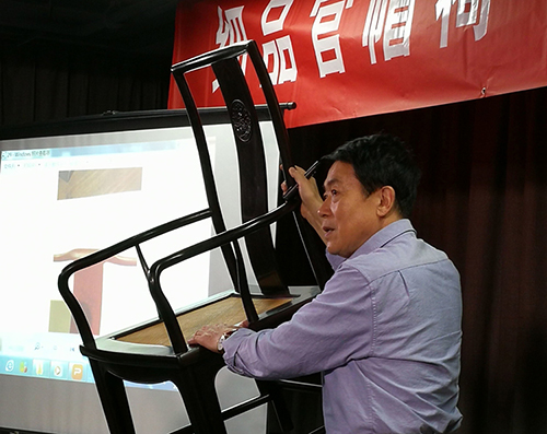 ▲胡德生先生在授課審美大會分為兩部分,首先是課堂授課,即3月6日,從案的起源、發(fā)展說到當今案類家具的制作使用;再從民間說到宮廷。第二部分是3月27日的實物鑒賞,專家對著實物家具進行點評。