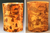 筆筒最早出現(xiàn)于何時,目前學術(shù)界眾說不一,尚無定論。文房收藏家劉傳俊先生經(jīng)過大量史料研究和實物考證,得出自己的結(jié)論:中國筆筒最早出現(xiàn)年代為明代萬歷年。