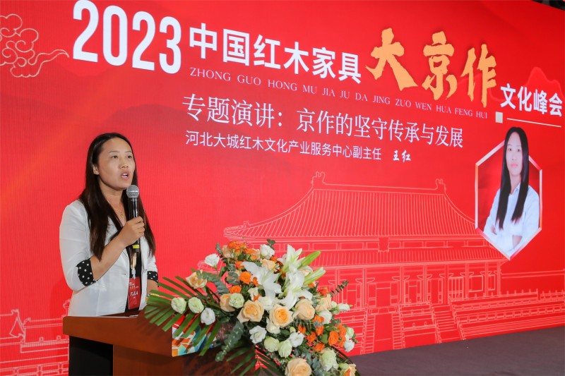 大城紅木文化產(chǎn)業(yè)服務(wù)中心副主任王紅女士,以《京作的堅(jiān)守、傳承與發(fā)展》為題做了主題演講,她追溯了大城紅木產(chǎn)業(yè)的歷史與淵源,介紹了產(chǎn)業(yè)現(xiàn)狀與規(guī)劃,特別強(qiáng)調(diào)了產(chǎn)業(yè)對傳統(tǒng)技藝的堅(jiān)守與傳承。大會(huì)認(rèn)為,大城作為京作家具主產(chǎn)區(qū)中的核心產(chǎn)區(qū),對大京作產(chǎn)業(yè)發(fā)展起著領(lǐng)頭羊作用。一直以來,大城紅木產(chǎn)業(yè)不浮不躁,堅(jiān)定信念,堅(jiān)守初心,努力在做大中做強(qiáng)。而政府對產(chǎn)業(yè)既服務(wù)又引領(lǐng),成為了產(chǎn)業(yè)發(fā)展的“壓艙石”。