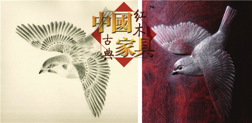 不過,能夠把平面圖案轉化成為立體圖案,這還僅僅是一小步,如何通過木雕的藝術形式,把原作的氣韻與靈動再現出來,并賦予其木作獨特的美律,為名作加分,這才是首要的。