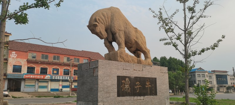 西河鎮(zhèn)幾條路的交叉口有一個(gè)三角形小廣場(chǎng)。我們發(fā)現(xiàn),2006年時(shí)廣場(chǎng)上夢(mèng)琦紅木的高炮廣告,早已被高架路燈所取代。而建于1993年的孺子牛雕塑,依舊頑強(qiáng)地矗立在廣場(chǎng)中央。我們對(duì)這里十分熟悉,每次到西河,都會(huì)先把車開到這里,到了這里,才算是真正到了西河。
