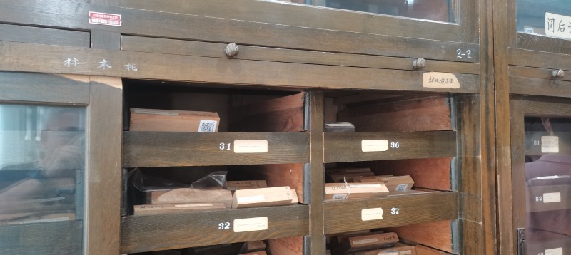 除去“木材工業(yè)國家工程研究中心”、“國家木材科學(xué)技術(shù)重點實驗室”這些名頭,更重要的原因是它擁有全亞洲最大的木材標本庫,也叫國家木材標本館。截至2024年12月,共收集保存全球83個國家和全國31省區(qū)的木材標本共42467號,覆蓋98%的國產(chǎn)商品材樹種。木材切片36000余片,隸136科570屬約2000種,臘葉標本6000余號。